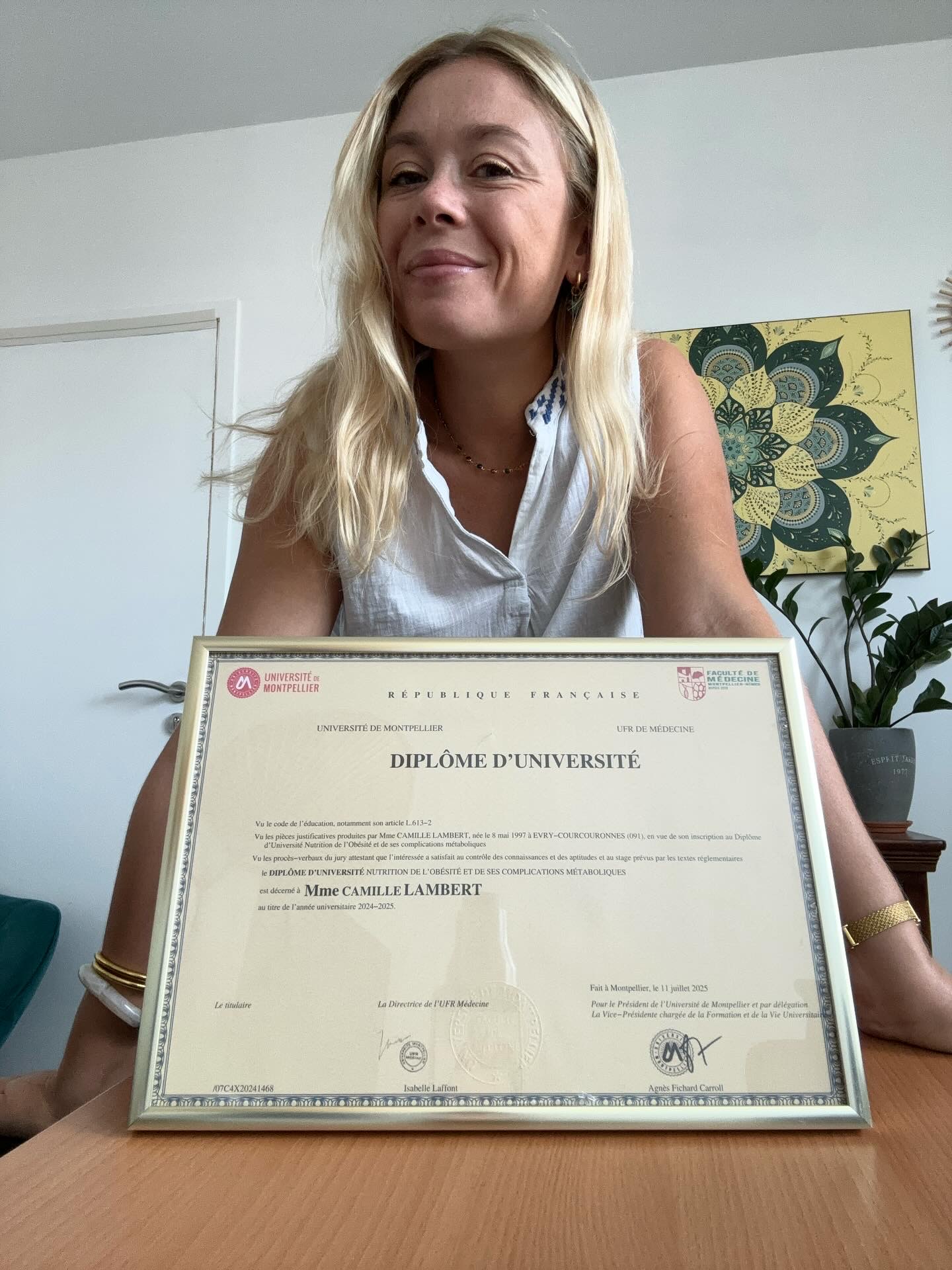 Enchantée, je m’appelle Camille, je suis diététicienne-nutritionniste diplômée d’État et passionnée par mon métier. Je suis également diplômée en 2025 à la nutrition de l’obésité et de ses complications métaboliques à la faculté de médecine de Montpellier.